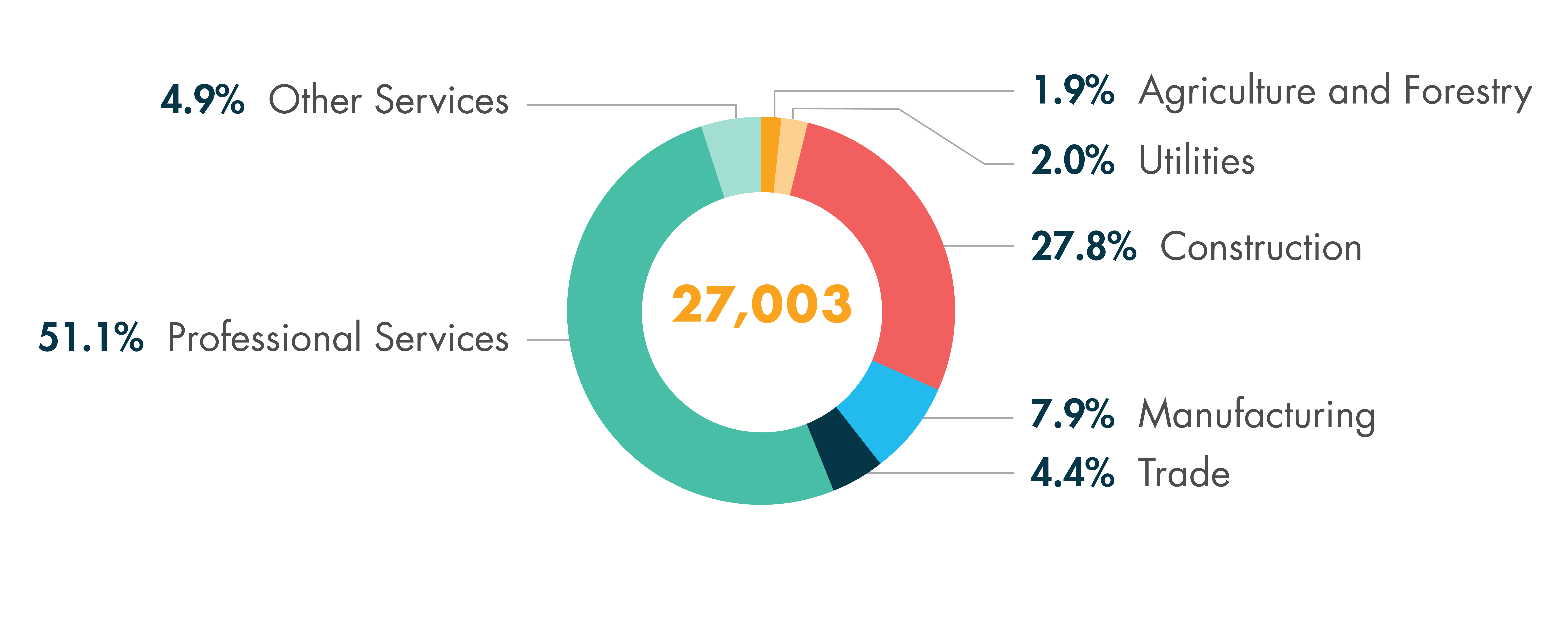 Across all clean energy sectors, most Kansas clean energy jobs were in construction and manufacturing.