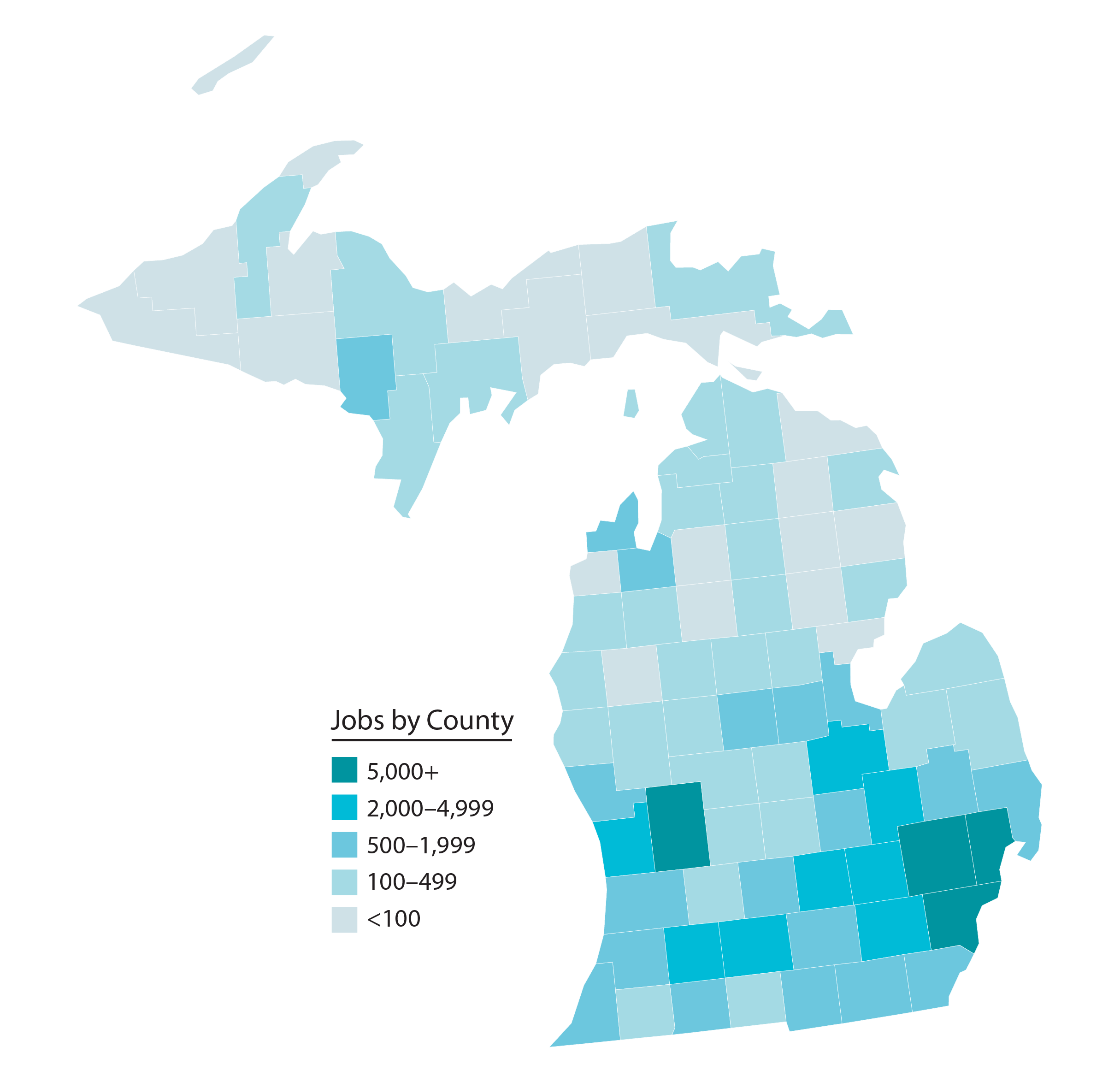 Across all clean energy sectors, the majority of clean energy jobs in Michigan were in construction and manufacturing.