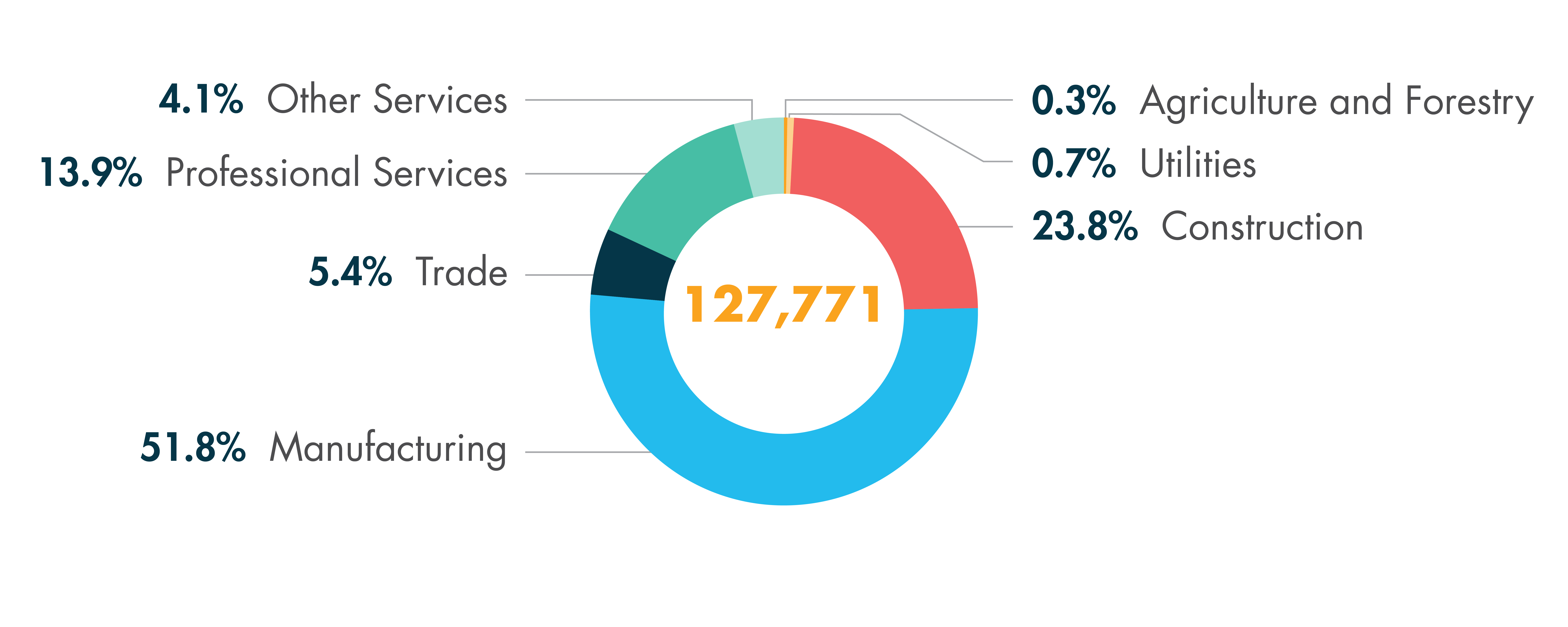 Energy efficiency comprises well over half of Michigan’s clean energy jobs. These 76,509 Michiganders spend their workdays doing things like manufacturing ENERGY STAR-rated appliances; installing efficient lighting; connecting heat pumps and other highly efficient heating, ventilation, and air conditioning systems; and constructing homes and commercial buildings using advanced materials like low-carbon concrete.