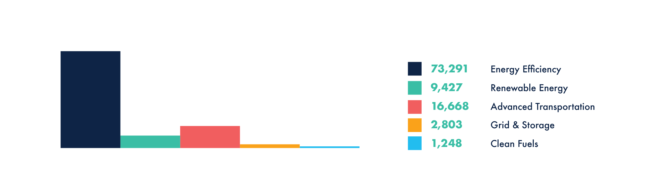 Each category below captures jobs from multiple clean energy sectors and industries. The majority of clean energy jobs in Ohio were in manufacturing and construction.